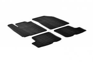 Gumové autokoberce Gledring pro vůz Kia Rio, mají 1 cm vysoký okraj, který chrání původní koberec auta před vodou, tajícím sněhem a agresivní solí.