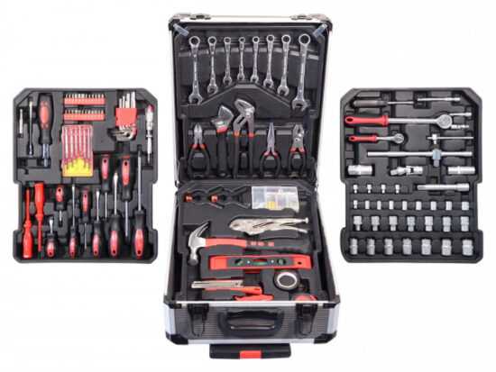 Kufr s nářadím - 186 dílů Praktický hliníkový kufr se 186 díly kvalitního nářadí vyrobeného z chrom-vanadiové oceli (CrV). Vše uspořádané v přehledných pozicích - 4 nástrojová plata. Kufřík je vybaven teleskopickým úchytem a kolečky - manipulace s celou sadou nářadí velice snadná. Sada obsahuje mnoho druhů kleští, šroubováků, gola klíčů, kladivo, vodováhu, stranové i imbus klíče, bity, základní spojovací materiál a další různé nářadí, které je vhodné pro domací kutily a velmi praktické i na cesty. obsah kufru 1. plato 1x kleště štípací 150 mm 1x nastavitelný klíč 200 mm 1x klešte siko 230 mm 1x kleště prodloužené 150 mm 1x kleště univerzální 150 mm 8x klíč očkoplochý (8, 9, 10, 11, 12, 13, 15, 17) 2. plato 6x šroubovák hodinářský 9x imbus klíč 24x bit (plochý, křížový, hvězdička, čtverec) 1x šroubovák na bity 1x nástavec na bity (šestihran) 11x šroubovák (křížový, plochý) 1x zkoušečka 100 - 250 V 1x vytahovák magnetický teleskopický 3. plato 1x ráčna 1/2 1x ráčna 1/4 1x T vratidlo pro nástavce 1/2 1x T vratidlo pro nástavce 1/4 1x šroubovák pro nástavce 1/4 13x nástavec 1/4 (4, 4.5, 5, 5.5, 6, 7, 8, 9, 10, 11, 12, 13, 14 mm) 14x nástavec 1/2 (8, 9, 10, 11, 12, 13, 14, 15, 16, 17, 18, 19, 20, 21 mm) 2x nástavec 1/2 dlouhý (16, 21 mm) 1x nástavec 1/2 kloubový 1x nástavec 1/4 kloubový 1x nástavec 1/2 prodlužovací 120 mm 1x nástavec 1/4 prodlužovací 50 mm 1x nástavec 1/4 prodlužovací 100 mm 4. plato 2x svěrka uni nylonová 1x kladivo 1x kleště samosvorné 180 mm 1x kleště konektorové 200 mm 1x metr svinovací 3 m 1x vodováha 220 mm 1x izolační páska 1x nůž 70x spojovací materiál Rozměry kufru: 36 x 51 x 20 cm Váha kufru : 11,50kg Rozložení a design komponentů se může lišit od zobrazení uvedeném na shopu.