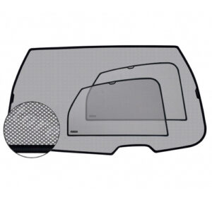 Sada obsahuje 5 slunečních clon. 2 clony na boční zadní okna, 2 menší clony na boční okna v zavazadlovém prostoru a 1 velkou clonu na zadní okno.