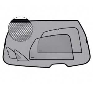 Sada obsahuje 5 slunečních clon. 2 clony na boční zadní okna, 2 menší clony na boční okna v zavazadlovém prostoru a 1 velkou clonu na zadní okno.